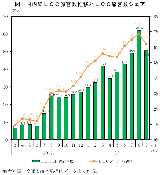 Low Cost Carrierの略で、低価格運賃で運行する格安航空会社の総称。